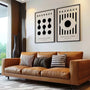 Perfect for elegant contemporary interiors, loft spaces, and creative studios, it works beautifully in a living room, office, or study. Display it as a framed poster set for a crisp, finished statement, or choose an unframed print pair for a clean, gallery-style look. A timeless choice for anyone who appreciates abstract structure, refined contrast, and modernist design.