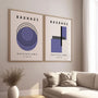 This set of two Bauhaus-inspired wall art prints presents a modern interpretation of classic geometric abstraction. The compositions are built around circles, rhythmic dots, rectangles, and precise vertical and horizontal lines, creating a strong architectural feel rooted in Bauhaus design principles.