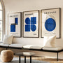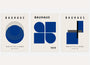 This Set of 3 wall art prints uses Bauhaus geometry—circles, half-circles, and simple modules—to create a calm, rhythmic dialogue between shape and space. Deep navy on a light neutral background gives the set a timeless, architectural clarity.