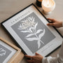 Botanique Grey Bloom is a refined botanical wall art print featuring a modern line art flower in soft cream-white tones on a calm grey background. The gentle contrast and clean composition create a quiet, balanced look with a modernist feel—minimal, elegant, and naturally soothing.