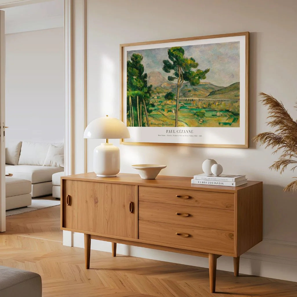 Bring the timeless light of Provence into your home with Paul Cézanne’s Mont Sainte-Victoire, Viaduct of the Arc River Valley. This iconic landscape wall art reflects Cézanne’s lifelong pursuit of harmony between nature and structure—where color, form, and space feel quietly intentional.