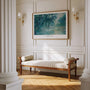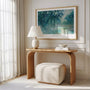 Delicate blues, muted greens, and silvery greys blend in gentle brushstrokes, with tree branches leaning into the scene and reflections shimmering below. The wide composition enhances the sense of open air and stillness, making it an ideal piece for modern, minimalist interiors, living rooms, offices, and relaxation spaces. Display it as a framed poster for a refined focal point, or choose an unframed print for a lighter, airy look.