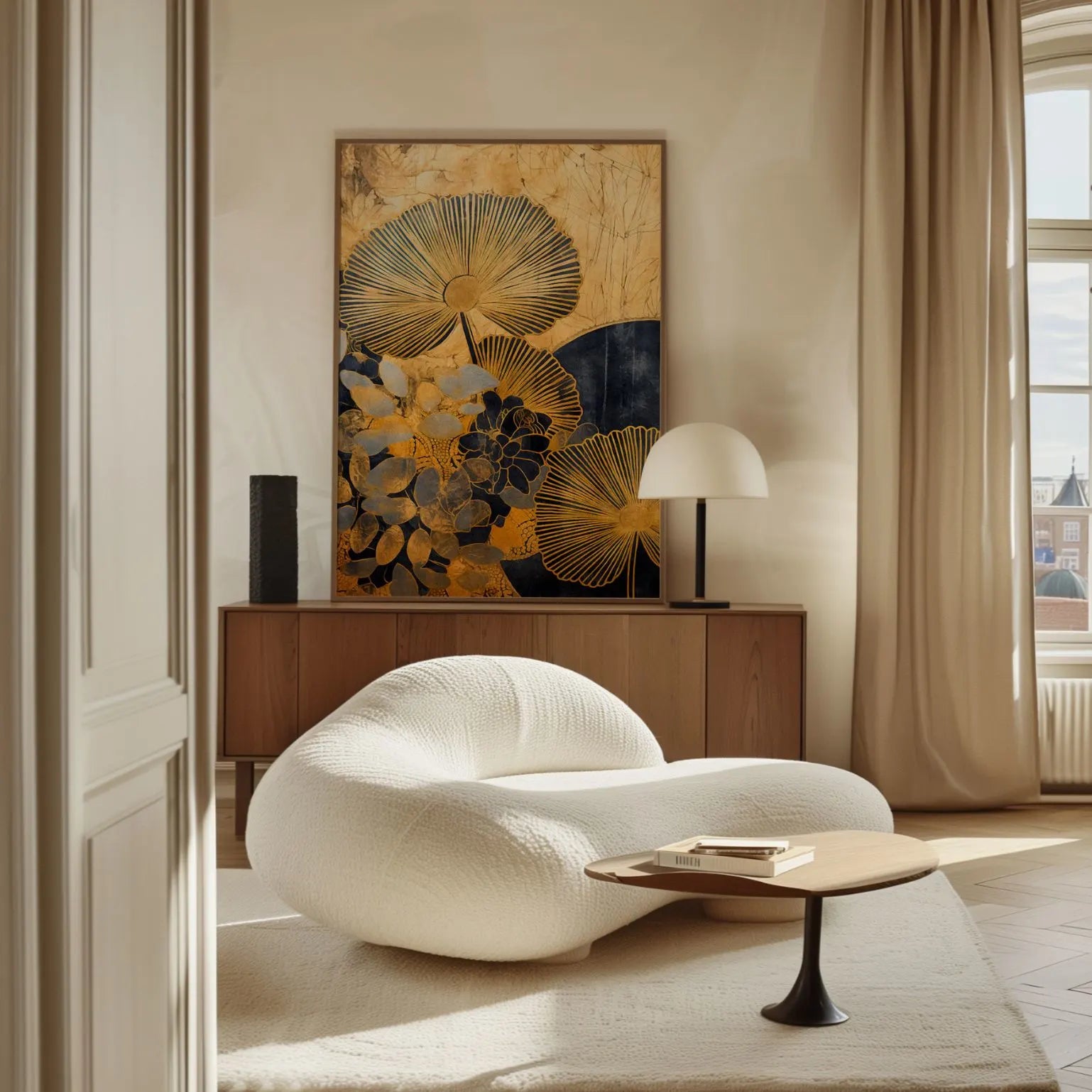 Calm yet sophisticated, this framed canvas print elevates both modern minimalist rooms and classic interiors where it can become a true focal point. The elegant balance of dark tones and golden glow makes it ideal for a living room, bedroom, hallway, or stylish office—anywhere you want a refined statement without clutter.