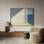 Bring a timeless sense of stillness into your home with this framed canvas print of Edward Hopper’s “Rooms by the Sea.” The scene shows an interior where an open doorway leads directly to the ocean—an unreal, almost dreamlike detail that feels both calm and quietly unsettling. Warm sunlight fills the room while cool sea blues stretch beyond, creating an unforgettable contrast of light, space, and emotion.