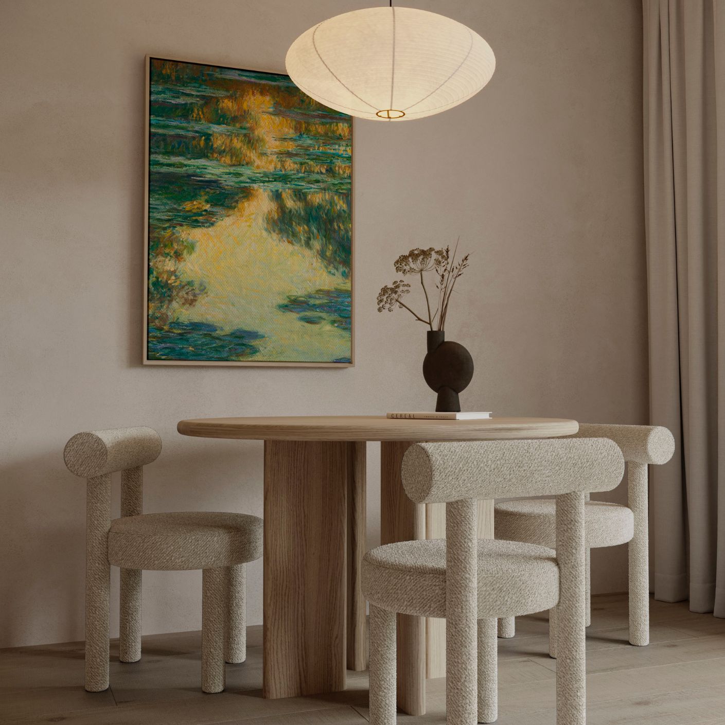 Part of Monet’s legendary Water Lilies works, this framed canvas print celebrates his lifelong fascination with nature and the fleeting beauty of a single moment. The composition feels airy and immersive—ideal for creating a calm atmosphere in a living room, bedroom, or workspace.