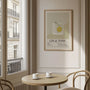 This elegant wall art print features a minimalist illustration of the classic Gin & Tonic, rendered in a soft, muted colour palette. A subtle drawing of a glass with lime and fresh herbs brings a sense of lightness and refined calm to the composition. Perfect for kitchens, dining rooms, or above a home bar, this artwork adds a clean, sophisticated accent. It works beautifully as a framed poster or as a premium unframed print, and pairs effortlessly with other cocktail-themed wall art.