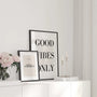 Keep your space feeling fresh with this minimalist quote wall art featuring “Good Vibes Only” in bold, elegant typography. The black-and-white design is clean, modern, and easy to style, making it a natural fit for Scandinavian, contemporary, and loft interiors. Display it as a framed poster for a polished look or choose an unframed print for a lighter, gallery-style feel. Perfect for living rooms, bedrooms, offices, or a focused work corner, this poster also makes a thoughtful, versatile gift for anyone who loves refined design and uplifting details.