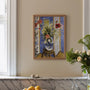 This vibrant wall art print features a richly decorative still life by Henri Matisse in a full-cover composition. A bouquet of intensely coloured flowers sits in an ornate porcelain vase with a rooster motif, placed on a wooden stool and framed by patterned, colour-filled panels that create a lively, almost ornamental rhythm. Vivid reds, blues, and green accents bring energy and visual depth, while the expressive brushwork keeps the scene fresh and modern. Ideal for lovers of modern art, bold interiors, and French Fauvist aesthetics, this piece looks striking as a framed poster or as a premium unframed print.