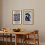 This set of two wall art prints is inspired by Henri Matisse’s iconic paper cut-outs, featuring abstract organic shapes in a rich, deep blue. The bold colour and flowing forms create compositions that feel dynamic yet balanced—modern, expressive, and effortlessly refined.