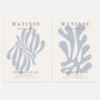 This set of two wall art prints is inspired by Henri Matisse’s celebrated cut-out approach, combining pastel light blue tones with fluid organic shapes. The soft forms bring visual lightness and create a calm, balanced atmosphere—minimal, artistic, and effortlessly modern.