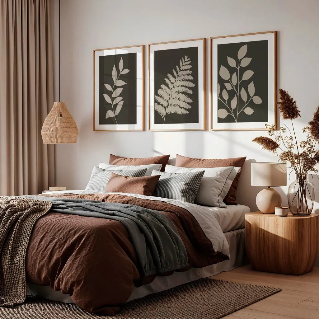 Minimal Botanical Silhouette Prints – Dark Neutral Set of 3