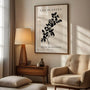 A refined piece of wall art rooted in modernist minimalism, featuring a bold black plant silhouette on a warm beige background. Clean lines and graphic simplicity create a calm, balanced composition with a subtle botanical edge. Perfect for modern, Scandinavian, and neutral interiors, this artwork adds harmony and a quietly confident statement without visual clutter. Display it as a framed poster for a polished, gallery-ready finish, or choose an unframed print for a clean, contemporary look. An ideal choice for anyone who loves timeless botanical design in muted tones.