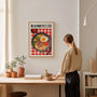 This inviting wall art print features a classic bowl of ramen filled with noodles, a soft-boiled egg, juicy pork, tomatoes, and fresh coriander, all rendered in a rich, warm colour palette. Inspired by Japanese cuisine and the atmosphere of Asian eateries, the illustration brings comfort, flavour, and visual depth to kitchens, dining rooms, or restaurant interiors. Ideal for lovers of Japanese food and culinary design, this artwork looks perfect as a framed poster or as a premium unframed print, adding character and cosy charm to your space.