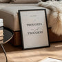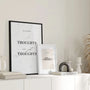 Find a quieter focus with this minimalist typography wall art featuring the phrase “Thoughts are just thoughts” set against a soft marble background. The gentle texture and understated palette bring a sense of calm while the message offers a steady reminder to create distance from passing thoughts. Style it as a framed poster for a refined, gallery look, or choose an unframed print for a lighter, minimalist finish. This poster suits Scandinavian-inspired interiors beautifully, from living rooms and bedrooms to offices and studies, and pairs easily with other muted typographic wall art.